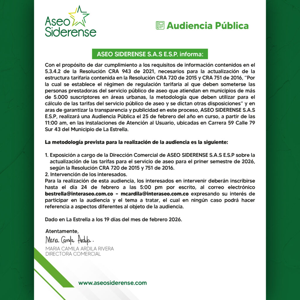 A continuación, encontrará el acceso a la información pública de este prestador, acorde con lo establecido en la Ley 1712 de 2014, ajustándose al régimen especial de los servicios públicos domiciliarios establecido por la Ley 142 de 1994; la información publicada es relativa con la actividad desarrollada, por lo tanto cualquier información adicional deberá ser solicitada a través de nuestro sistema de atención de PQRS.